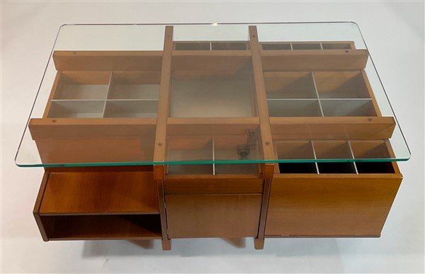 Tavolino da salotto. Italia, anni '70. Legno impiallacciato e massello, piano i