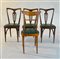 Lotto 585 | Lotto composto da tre sedie in legno con schienale intagliato a lira e seduta i