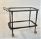 Carrello portavivande in legno e ottone con due ripiani in vetro. Italia, anni