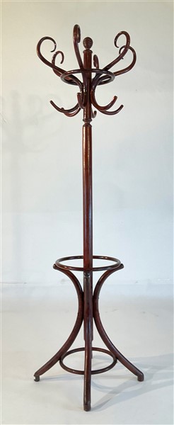Appendiabiti a stelo. Italia, secolo XX. Faggio curvato, con portaombrelli. (h