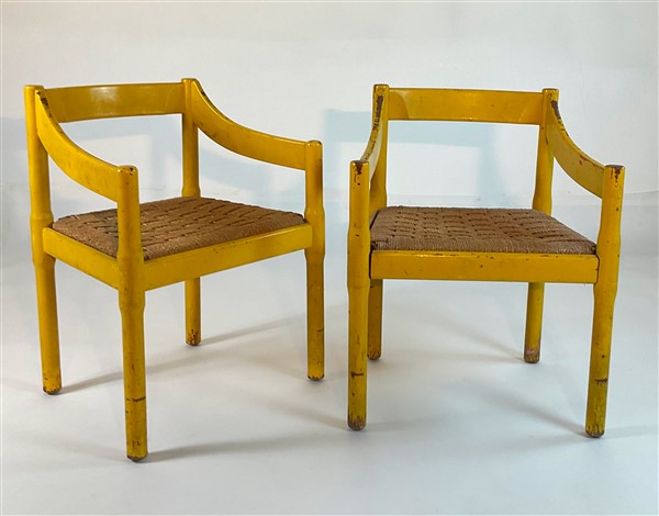 Vico Magistretti Due sedie modello "Carimate". Produzione Cassina, Meda, anni '6