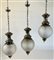Tre lampade a sospensione. Italia, anni '50/'60. Diffusore sferico in vetro sat