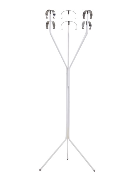 Appendiabiti modello "Erato". Produzione Artemide, Italia, anni '60. Sei grucce in tondino metallico a sezione esagonale verniciato bianco. Base a tripode. (h cm 156) (lievi difetti)
