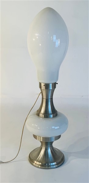 Lampada da terra e da tavolo. Italia, anni '70. Diffusore in vetro opalino e struttura in metallo nichelato. (h cm 121; d cm 35) (difetti e mancanze)
