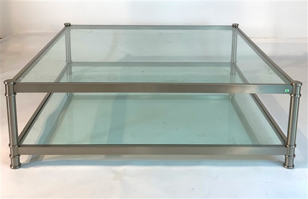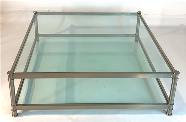 Tavolo da salotto in metallo con piano in cristallo. Italia, anni 2000. (cm 134x42x134) (difetti)