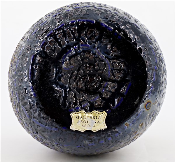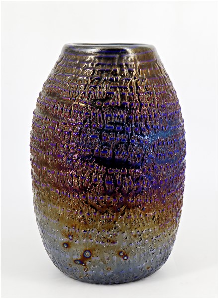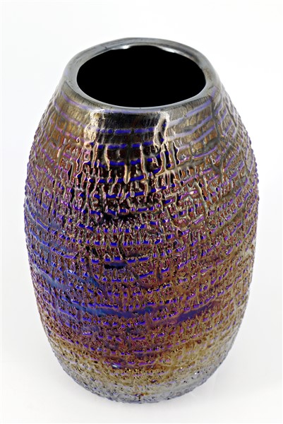 Manifattura di Murano Vaso in vetro blu con superficie corrugata e iridata. Seco