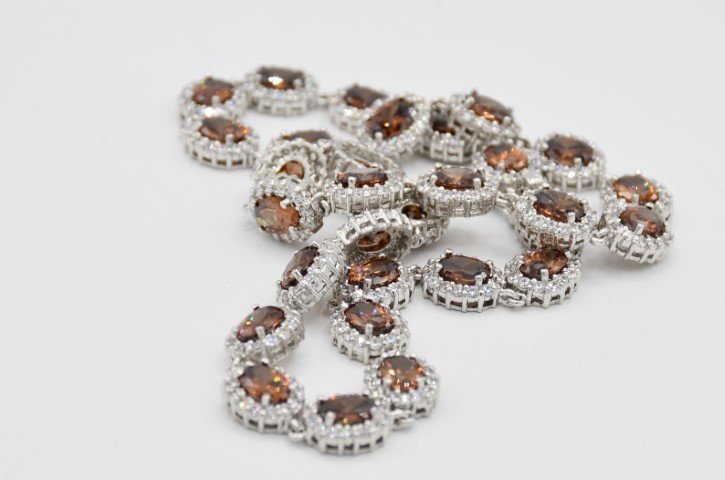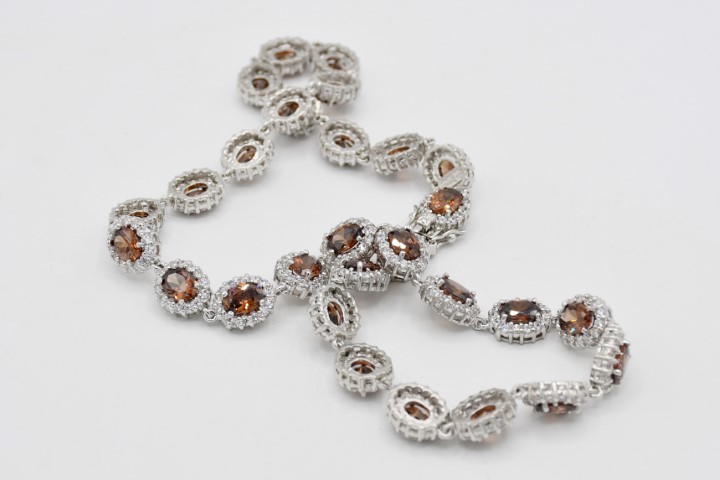 Girocollo in argento, cubic zirconia e quarzi fumè