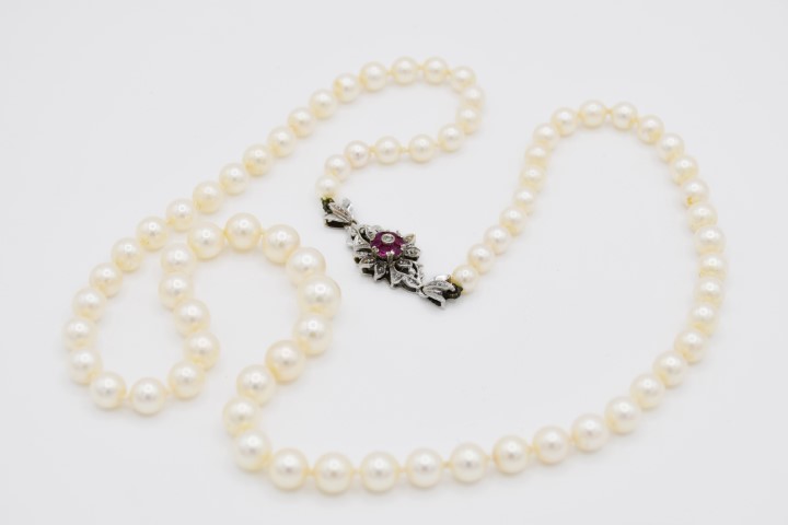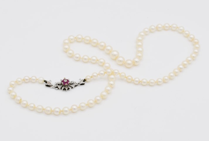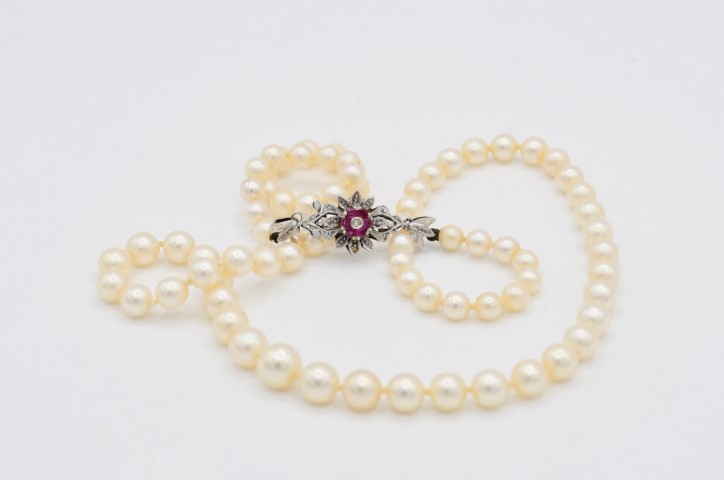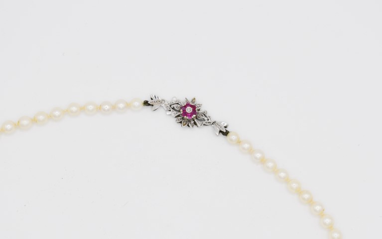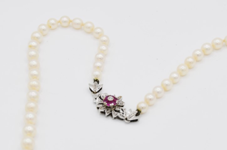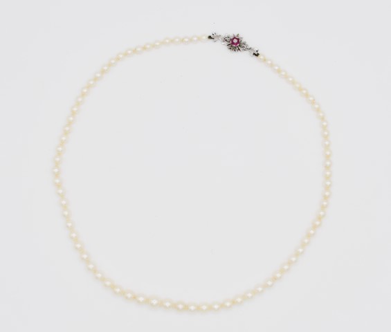 Collana di perle e sei rubini
