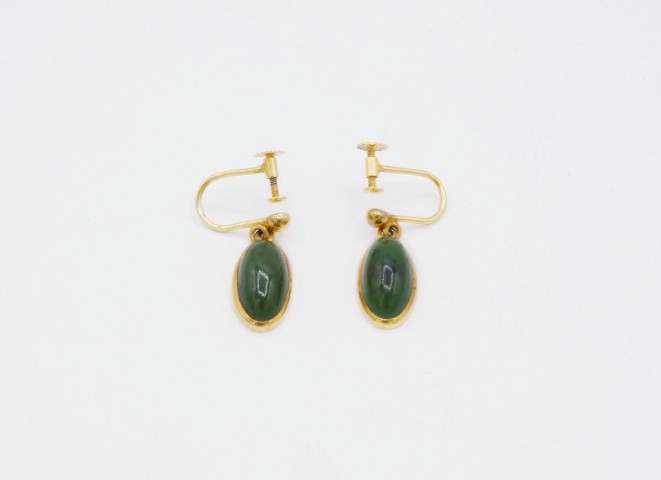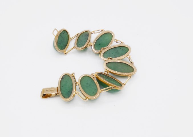 Demi-parure in oro 9kt e cabochon di giada serpentina (New Jade)