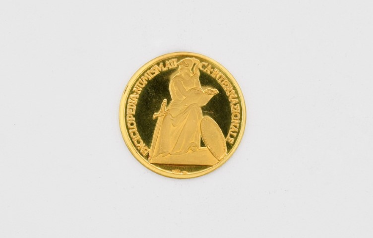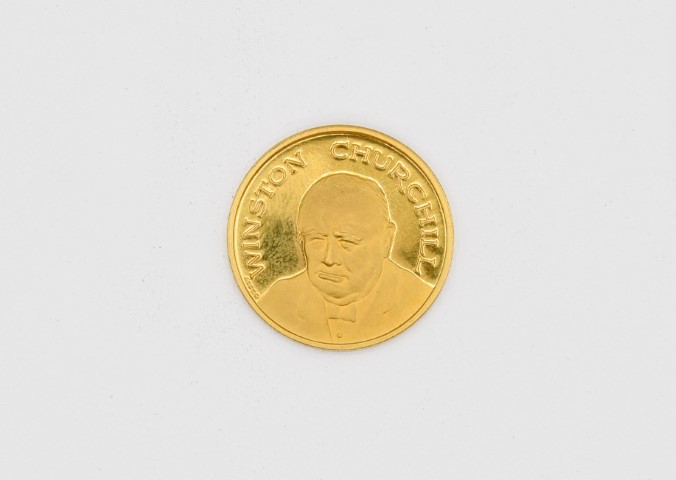 Medaglia in oro con il ritratto di Churchill Winston, Enciclopedia numismatica internazionale