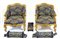Coppia di antiche poltrone in legno intagliato e dorato con decoro a volute fog