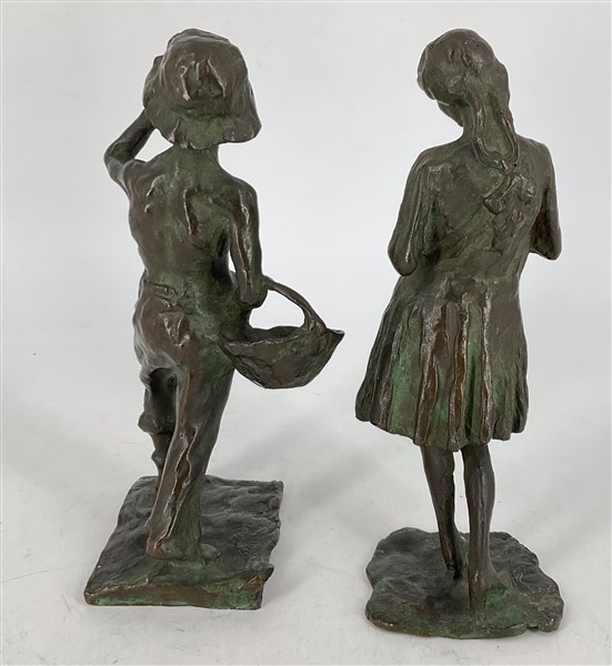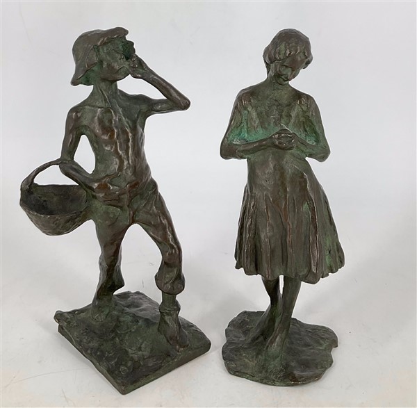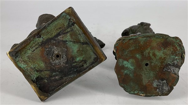 Lotto composto da tre sculture in bronzo di cui una recante firma indecifrata alla base (h cm max 23) (difetti)