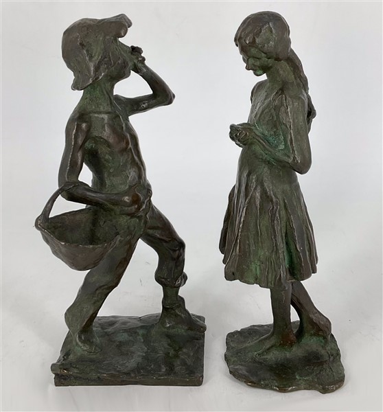 Lotto composto da tre sculture in bronzo di cui una recante firma indecifrata a