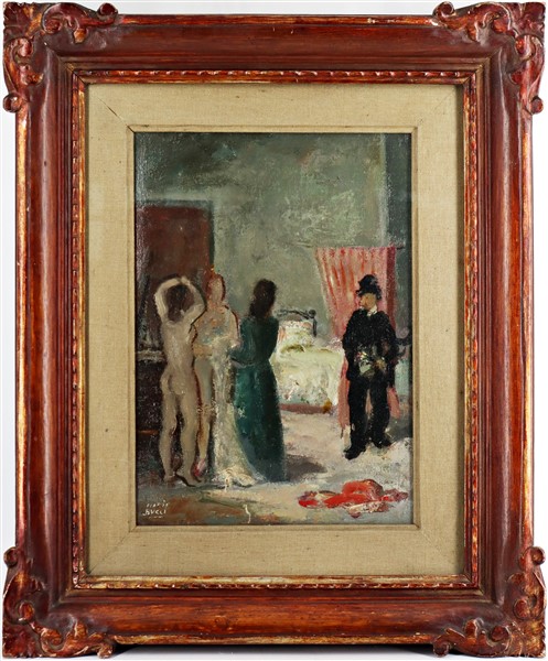 Mario Bucci "Scena d'interno con nudi femminili" olio su tela (cm 35x25,5) firma