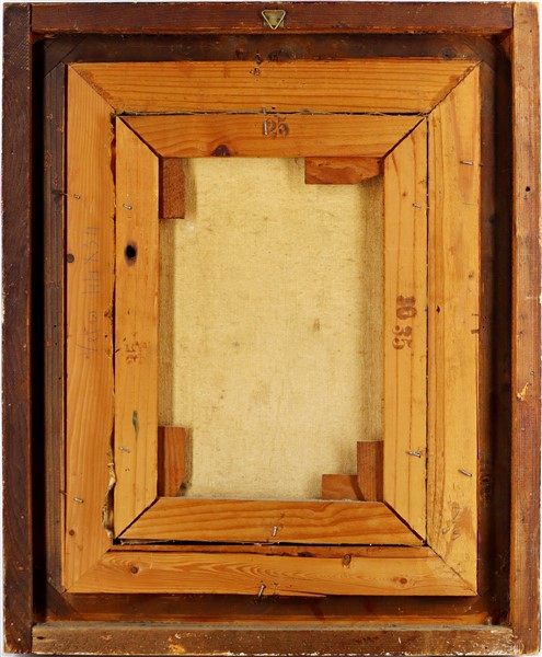 "Scena d'interno con nudi femminili" olio su tela (cm 35x25,5) firmato in basso a sinistra