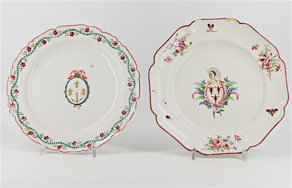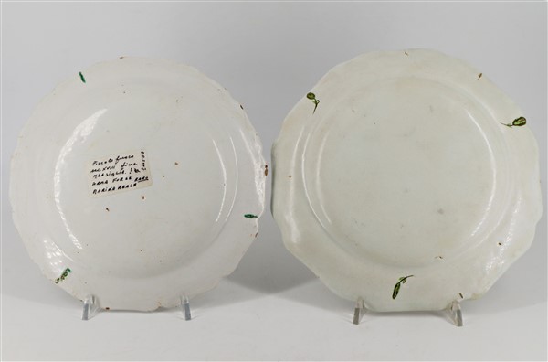 Manifatture francesi, secolo XVIII. Lotto composto da due piatti in maiolica de