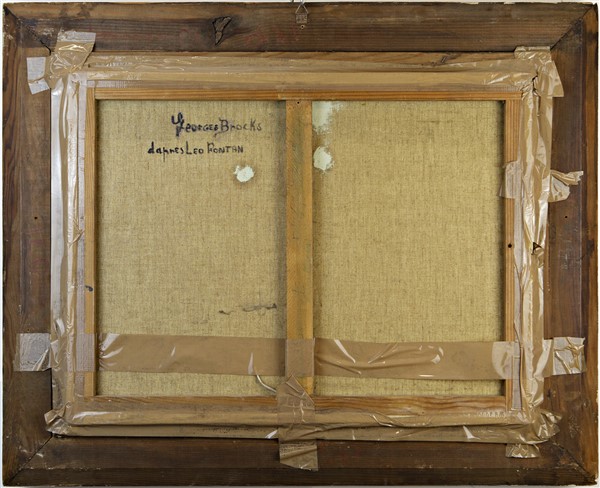 Dipinto ad olio su tela raffigurante scorcio cittadino con auto (cm 45x60) firmato al retro Georges Brocks e iscritto
