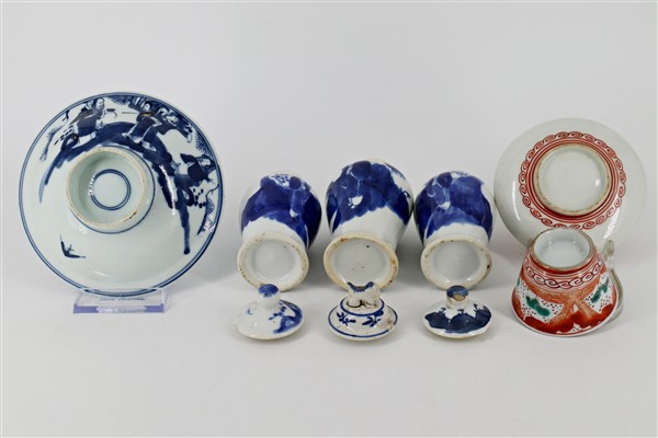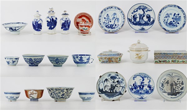 Cartone contenente numerosi oggetti in porcellana Cina e Giappone, secolo XVII