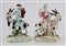 Manifattura del secolo XIX. Coppia di figure di ambulanti su capra in porcellan