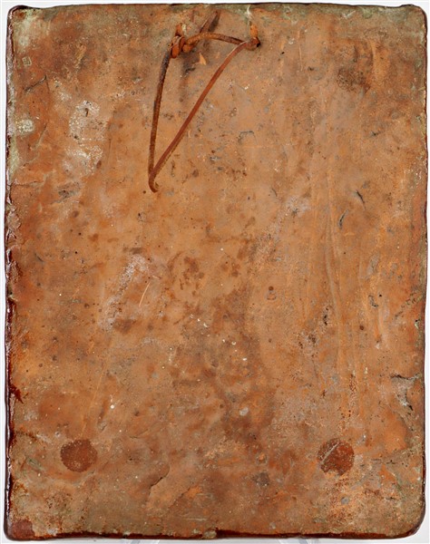 Manifattura del secolo XIX. Placca in terracotta smaltata con decoro a rilievo