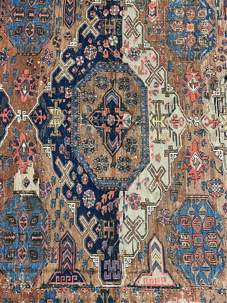 Tappeto Soumak, Caucaso, fine secolo XIX. Decoro con quattro medaglioni romboid