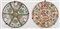 Due piatti in porcellana Canton decorati con motivi floreali e personaggi entro riserve