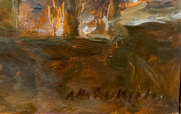 Attilio Melo "Milano, Alzaia Naviglio Grande della Darsena" 1998, olio su carton