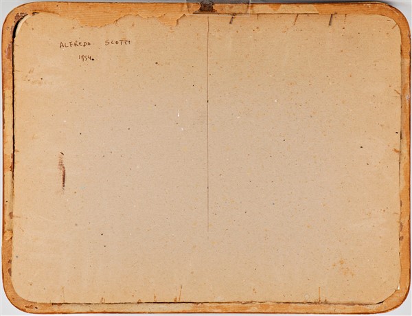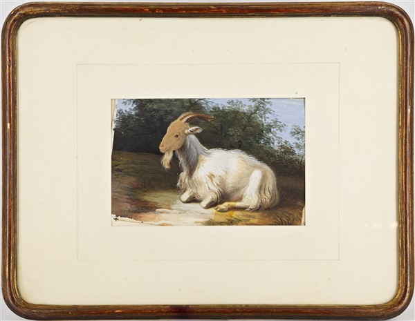 Ignoto del secolo XIX "Caprone a riposo" tecnica mista su cartoncino (cm 14,5