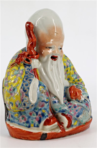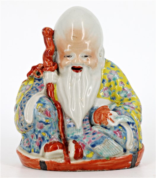 Buddha in porcellana policroma Cina, secolo XX (h cm 15)(lievi difetti)