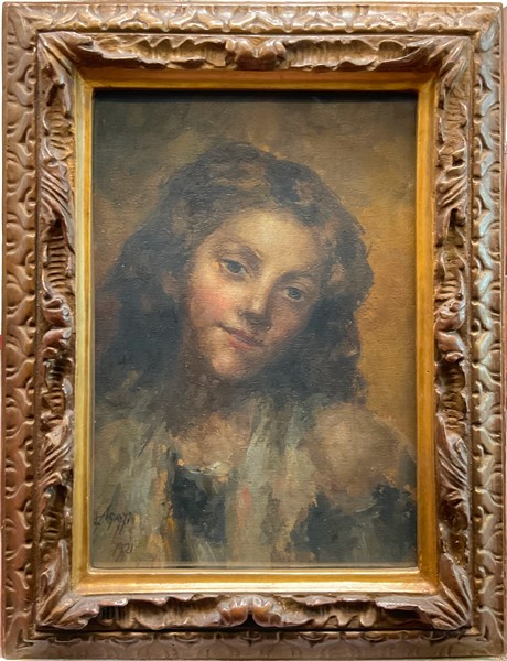 Rinaldo Agazzi "Ritratto femminile" 1921 olio su cartone (cm 50x33,5) firmato e