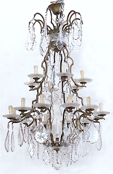 Lotto 1123 | Lampadario a doppio ordine con diciotto luci in metallo e pendenti in vetro sfa
