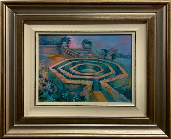 "Piccolo labirinto" 1987, acrilico su tela (cm 24x30) firmato e datato al retro.