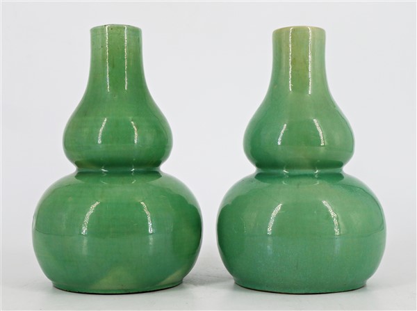 Coppia di vasi in porcellana con invetriatura verde a doppia zucca Cina, secolo