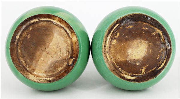 Coppia di vasi in porcellana con invetriatura verde a doppia zucca