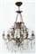 Lampadario a otto luci in metallo e lamierino dorato con pendenti in vetro sfaccettato (h cm 100 ca) (difetti e mancanze)