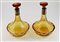 Lotto composto da coppia di bottiglie in vetro ambrato e molato con tappo e col