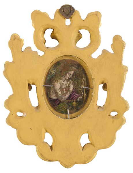 in cornice barocca del secolo XIX in legno intagliato, traforato e dorato (difetti e mancanze)