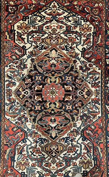 Tappeto Bachtiari, Persia, fine secolo XIX. Decoro con grande medaglione con pu