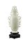 Vaso con coperchio in serpentino delicatamente inciso con decorazione floreale, poggiante su base in legno