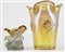 Lotto composto da un piccolo vaso Daum in pasta di vetro con base decorata da due cavalli e un vaso in vetro soffiato pagliesco iridato decorato da farfalle. (h max cm 15,5) (difetti e mancanze)