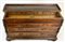 Canterano in noce intarsiato in legni vari a volute con fronte a tre cassetti e