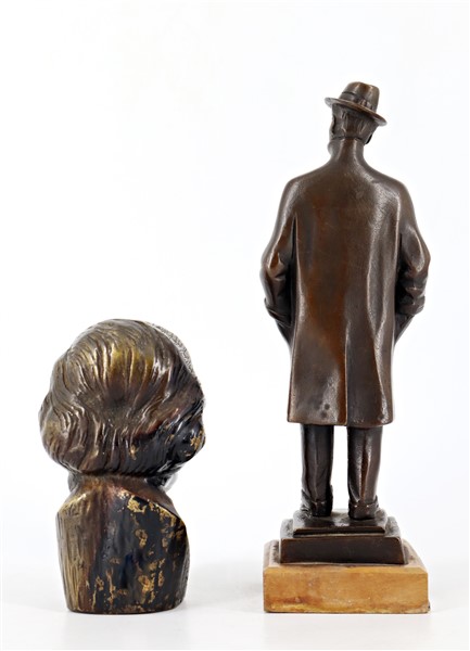 Lotto composto da due sculture in bronzo e metallo raffiguranti "Giacomo Puccin