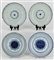 Quattro piatti in porcellana bianca e blu decorati con motivi floreali e simbol