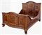 Letto con testiera e pediera di forma mossa in noce intagliato, pannellato e fi