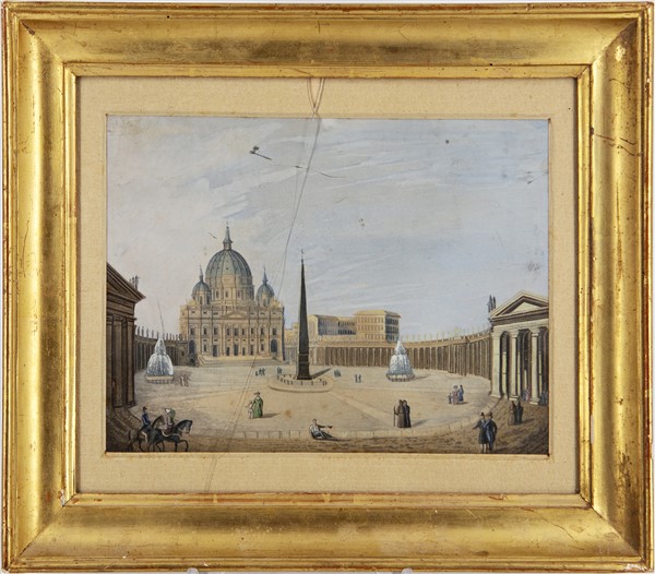 Ignoto del secolo XIX "Veduta di piazza san Pietro" incisione acquerellata in