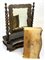 Specchierina d'appoggio di forma sagomata in legno laccato con sostegni torniti