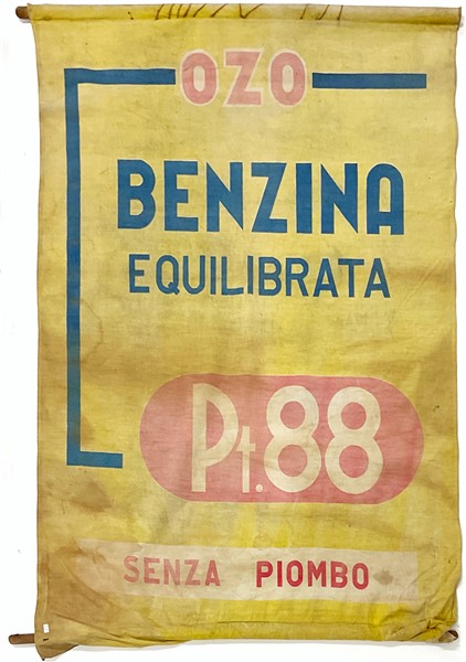 Lotto composto da due stendardi pubblicitari in tessuto per la benzina Ozo (cm