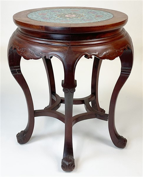 Sgabello con piano in metallo smaltato decorato con motivi floreali Cina, seco