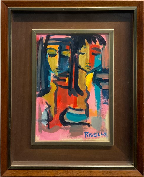ENZO PITUELLO "Figure cinesi" acrilico su tela (cm 30x20) firmato in basso a des