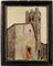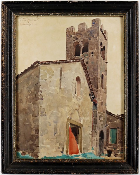 Angelo Maria Crepet "Il sagrato della chiesa" acquerello su cartone (cm 35x27)